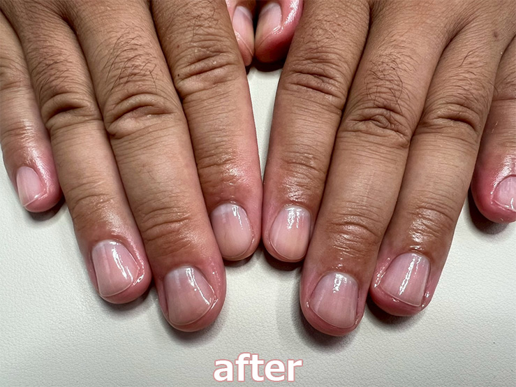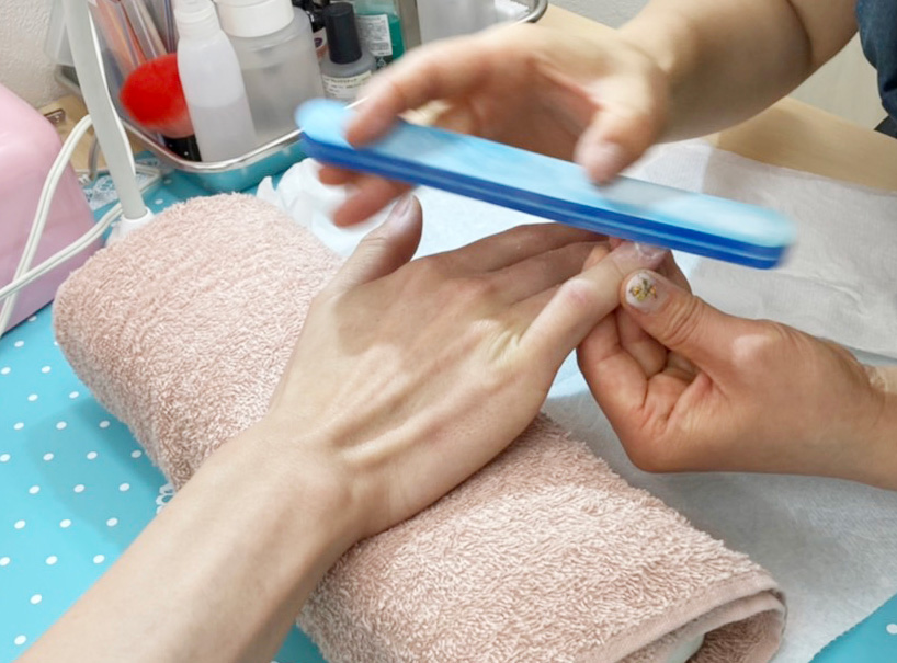 爪の形を整え、甘皮を処理し、表面を丁寧に磨くことで、